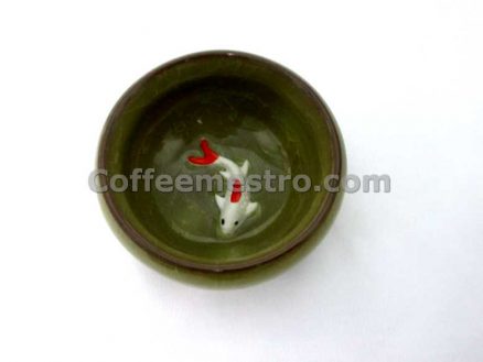There are total 6 ceramic tea cups and each with a Koi Fish Shape at the Bottom, which when your pour light color liquid into the cup, it looks like a Koi swimming at the cup. Each cup is about 3.2cm tall and diameter is about 6cm. Used condition, kept by collector, never been used. No box included.